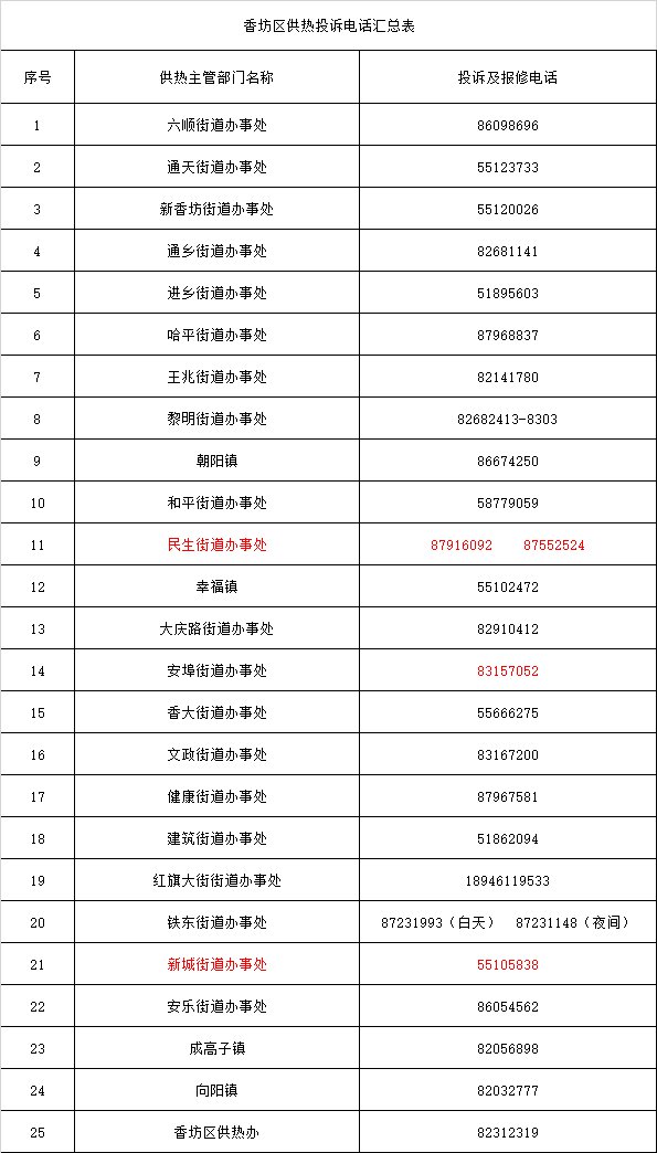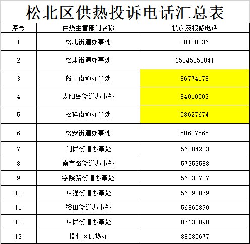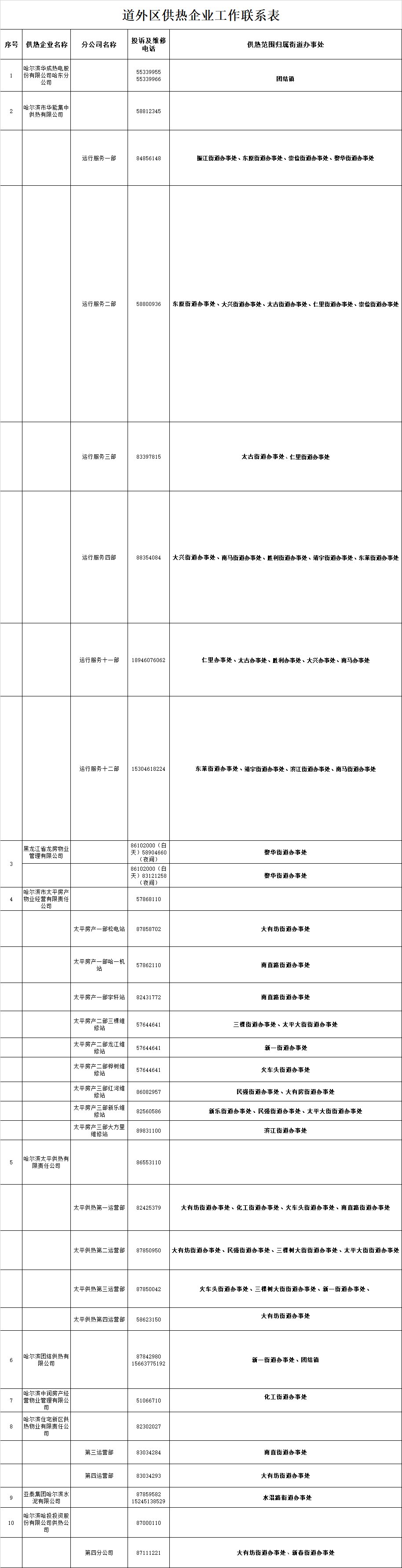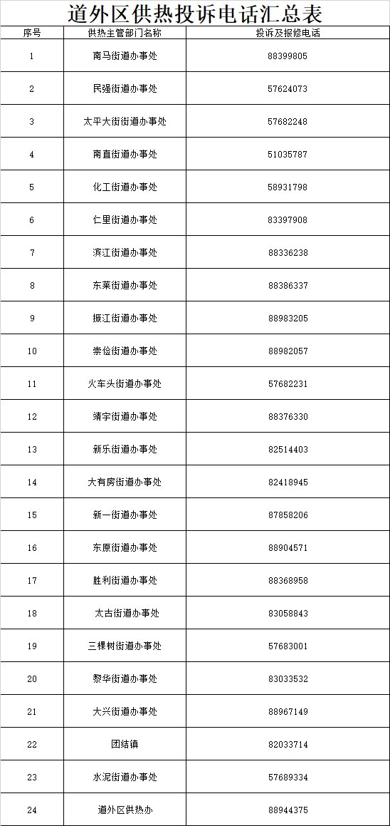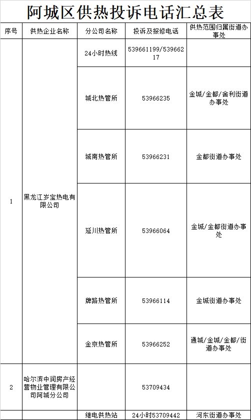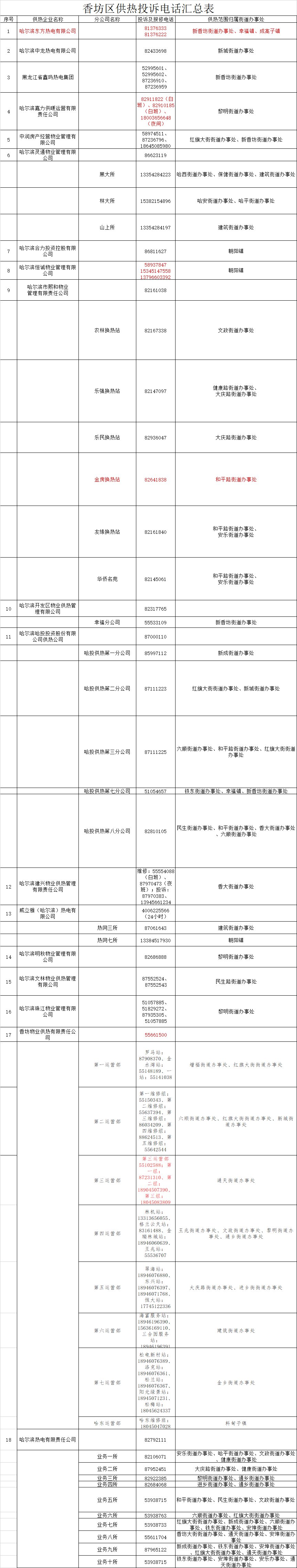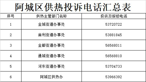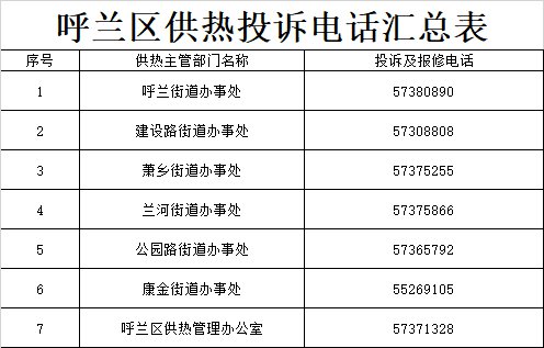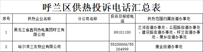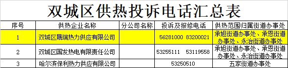 哈尔滨市住建局公布哈尔滨市9区供热投诉电话: