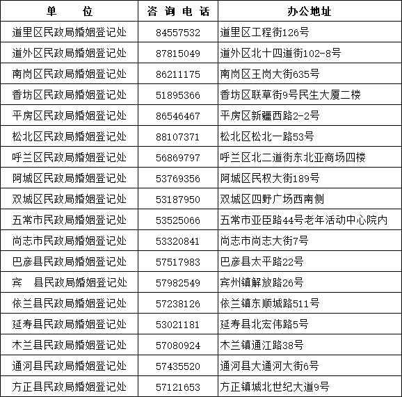 从哈尔滨市民政部门了解到,为满足人民群众对婚姻登记服务便捷化、智能化的需求,哈尔滨市婚姻登记“全城通办”10月28日起正式实行。目前,哈尔滨市各区、县(市)共有18家国内婚姻登记机关。全城通办工作开展