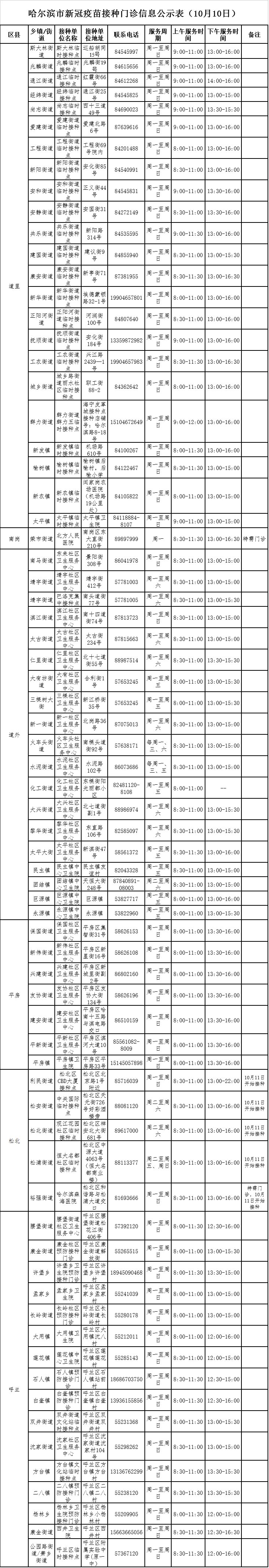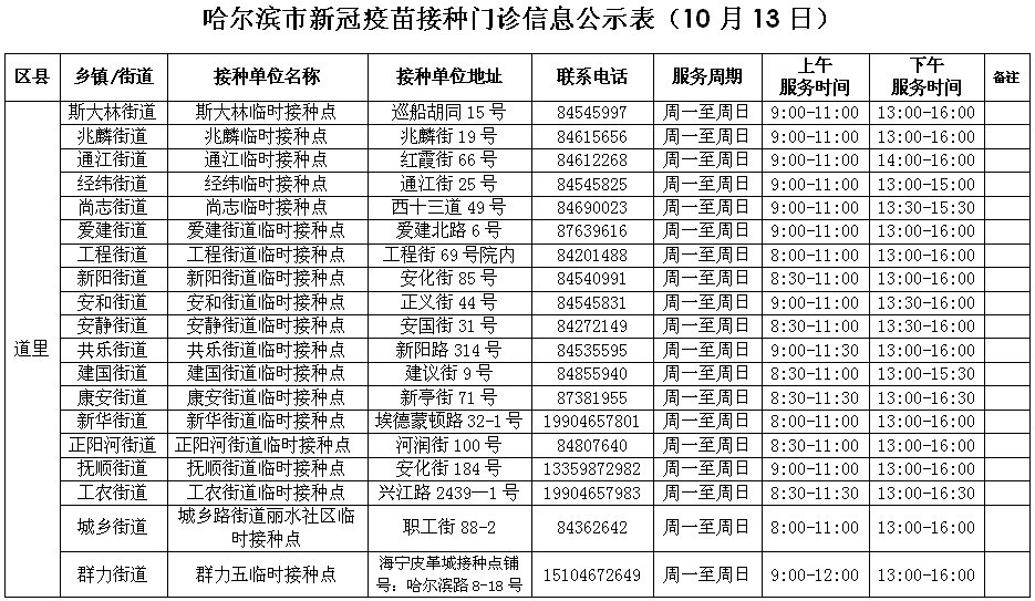 哈尔滨市及各区、县(市)新冠疫苗接种24小时咨询热线:区、县(市)24小时热线电话道里区51669665南岗区86243577道外区57672096香坊区55694618平房区86520920呼兰