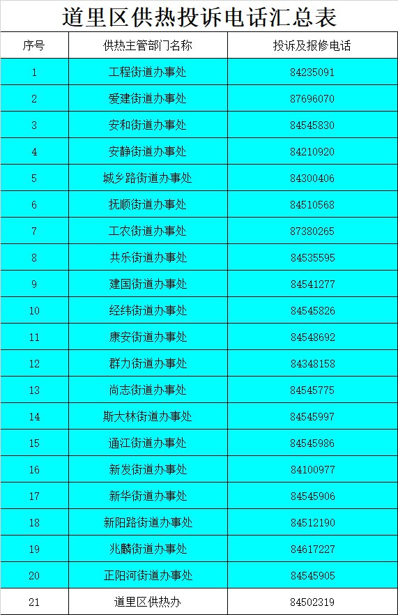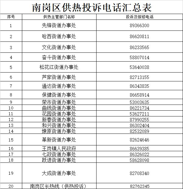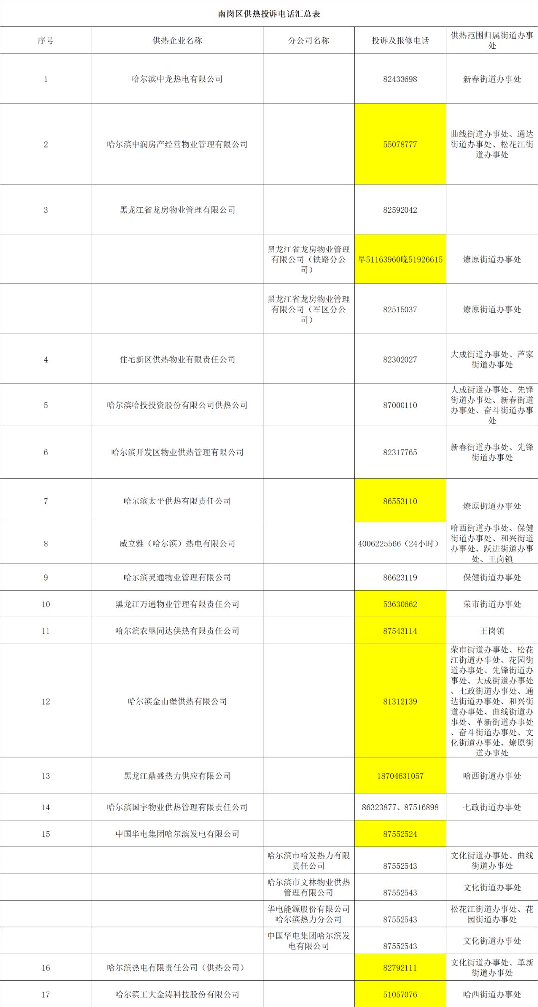 哈尔滨供暖问题解答: 2021年哈尔滨10月16日开始供暖。2021至2022供热季期间,为方便居民咨询和反映供热问题,供热主管部门公布了各供热企业、街道办事处、区住建局供热投诉受理电话。居民如发现